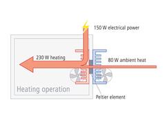 Het is puur een elektrische warmtepomp, vernoemd naar het Peltier-effect en het Seebeck-effect die beide met dat element opgewekt kunnen worden door het stroomverloop om te draaien. Met hetzelfde element is het mogelijk om te verwarmen en te koelen.
